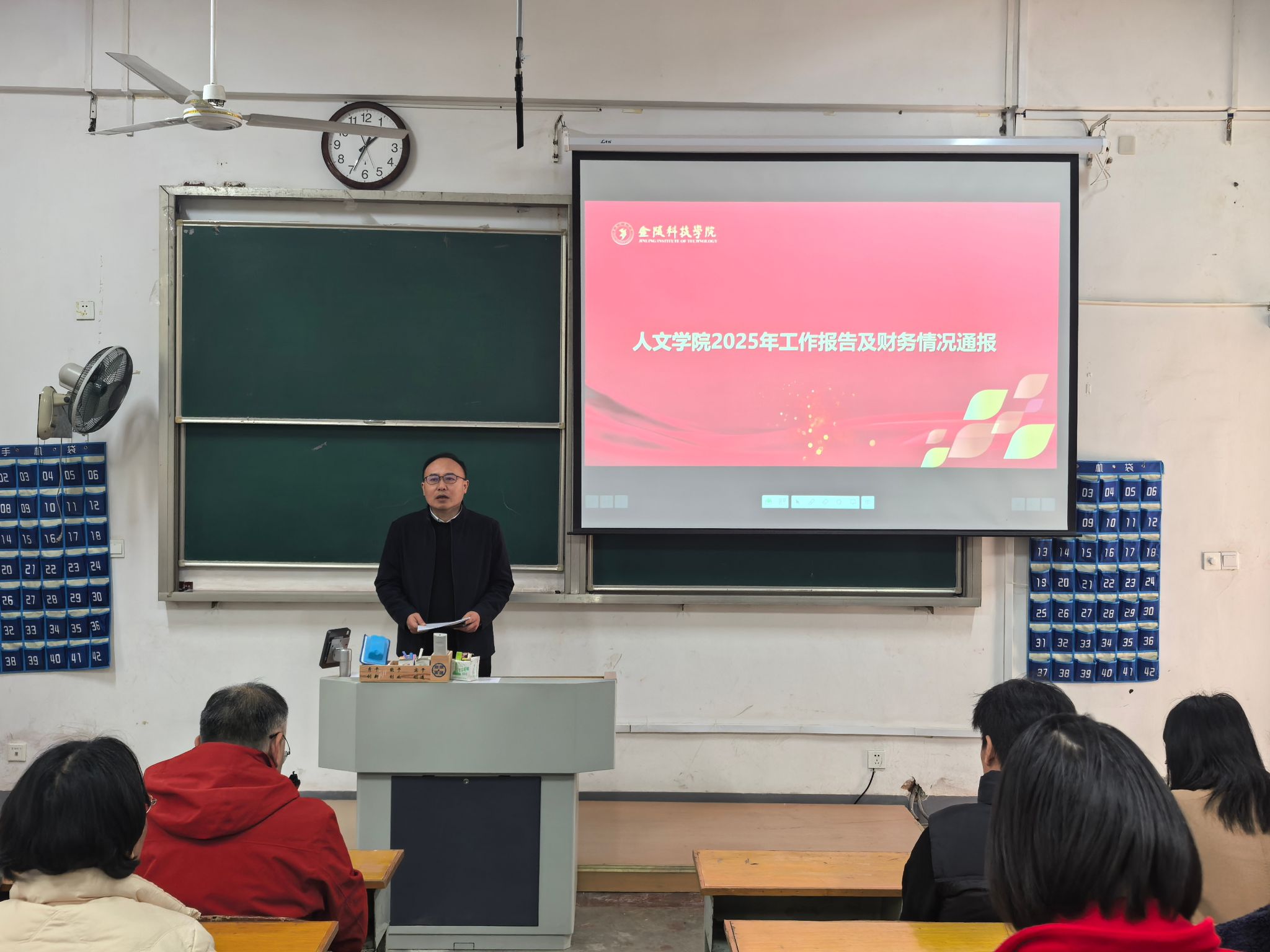 12月10日下午,人文学院第五届六次教职工大会在幕府校区教学楼第二阶梯教室隆重举行。大会由学院党委书记吴轶军主持,全体教职工参加。